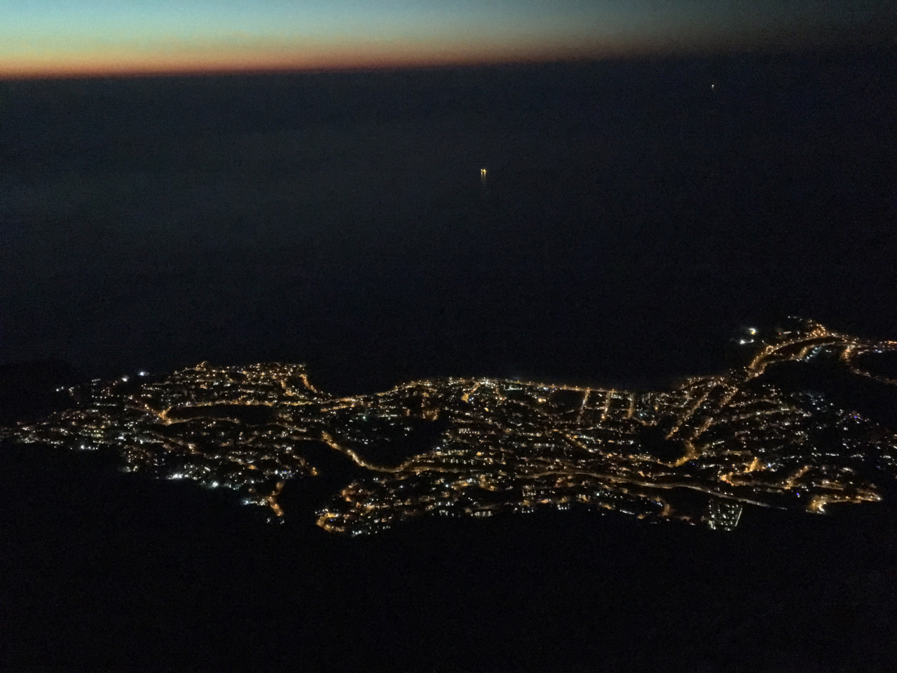 - Riding down over the city in darkness
